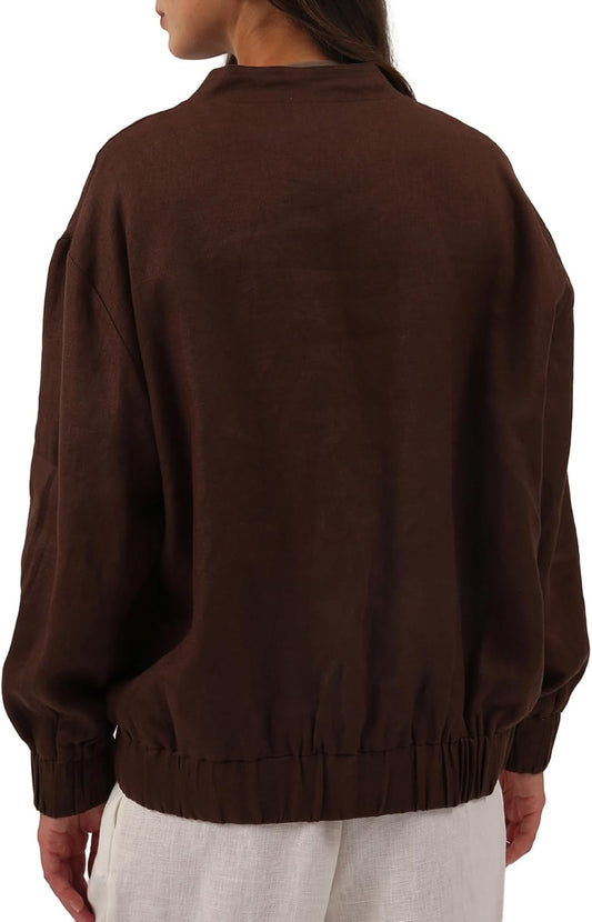 Women's 100% Linen Button Down Bomber Jacket