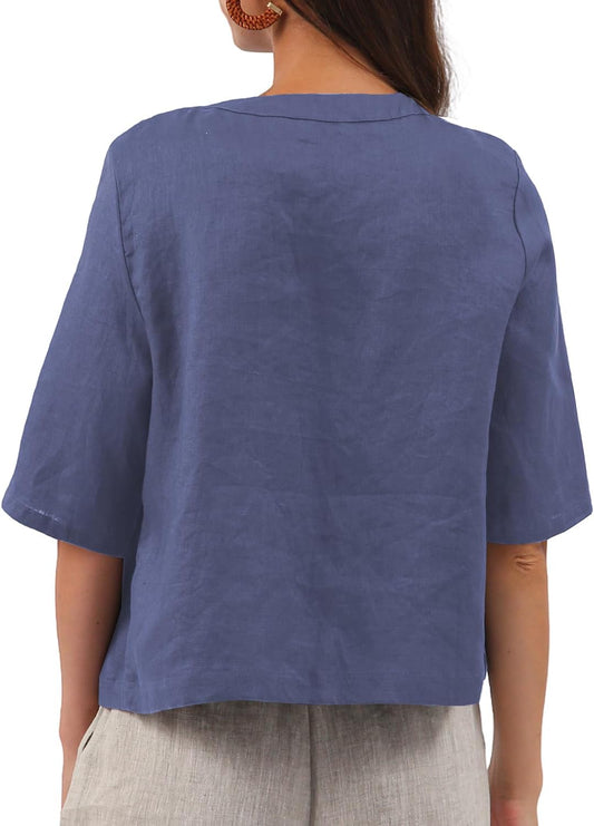 Women's 100% Linen 3/4 Sleeve Button Up Cardigan