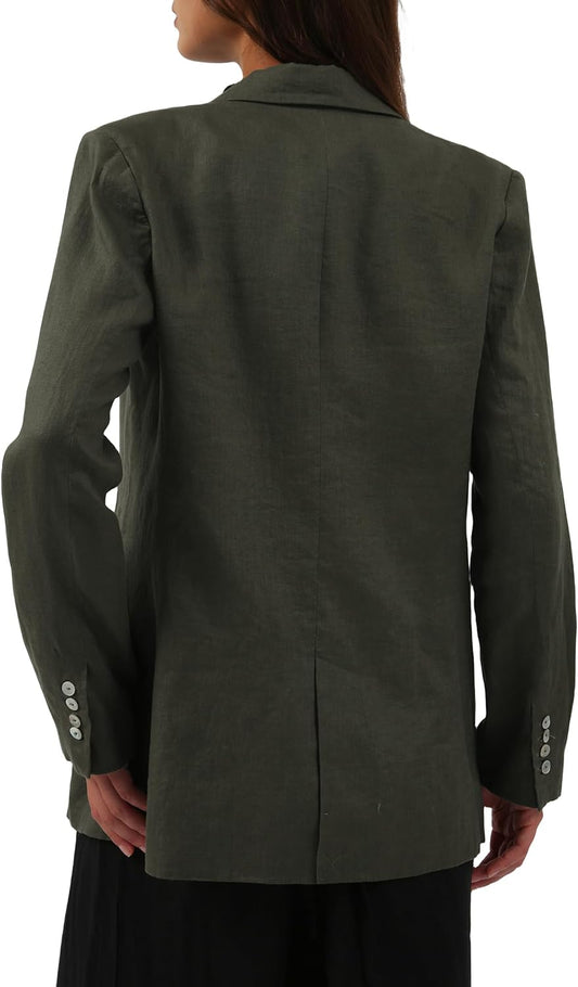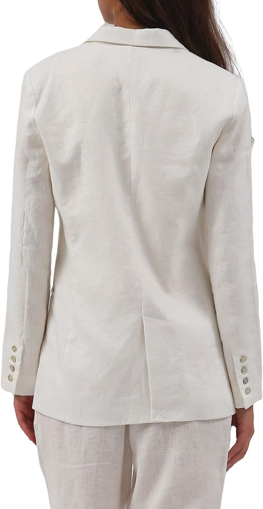Women's 100% Linen Double-Breasted Notched Blazer