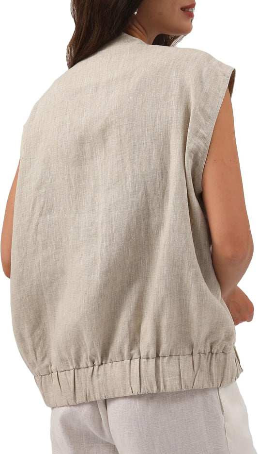 Women' s 100% Linen Sleeveless Button Up Vest Coat