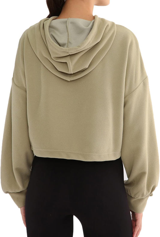 Amazhiyu Womens Waffle Knit Cropped Hoodie