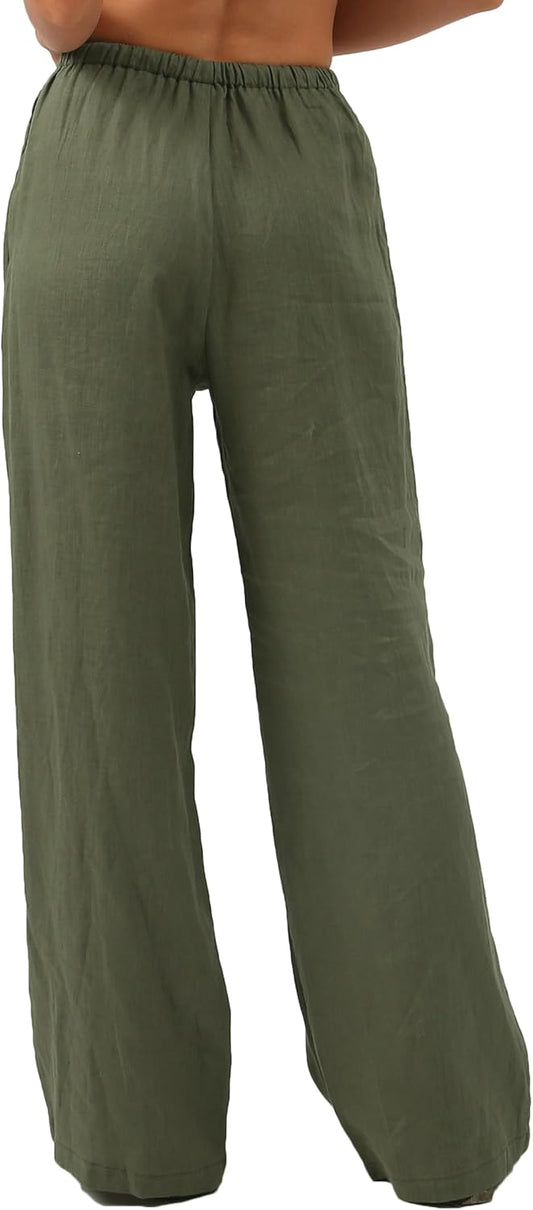 Women's 100% Linen Side Tie Wide-Leg Pants