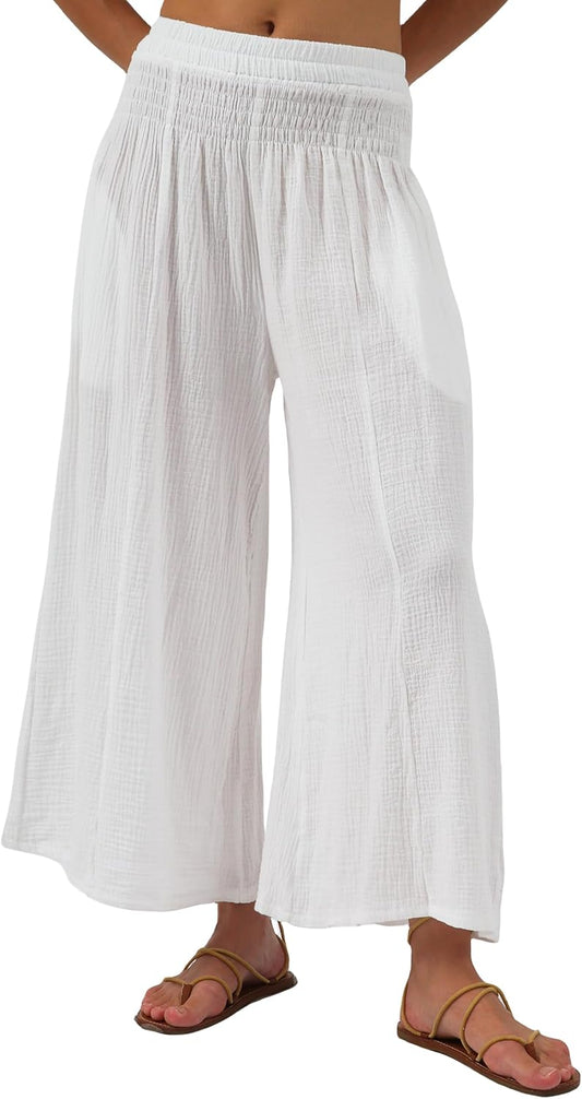 Women's Cotton Gauze Wide Leg Casual Palazzo Pants