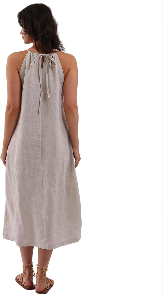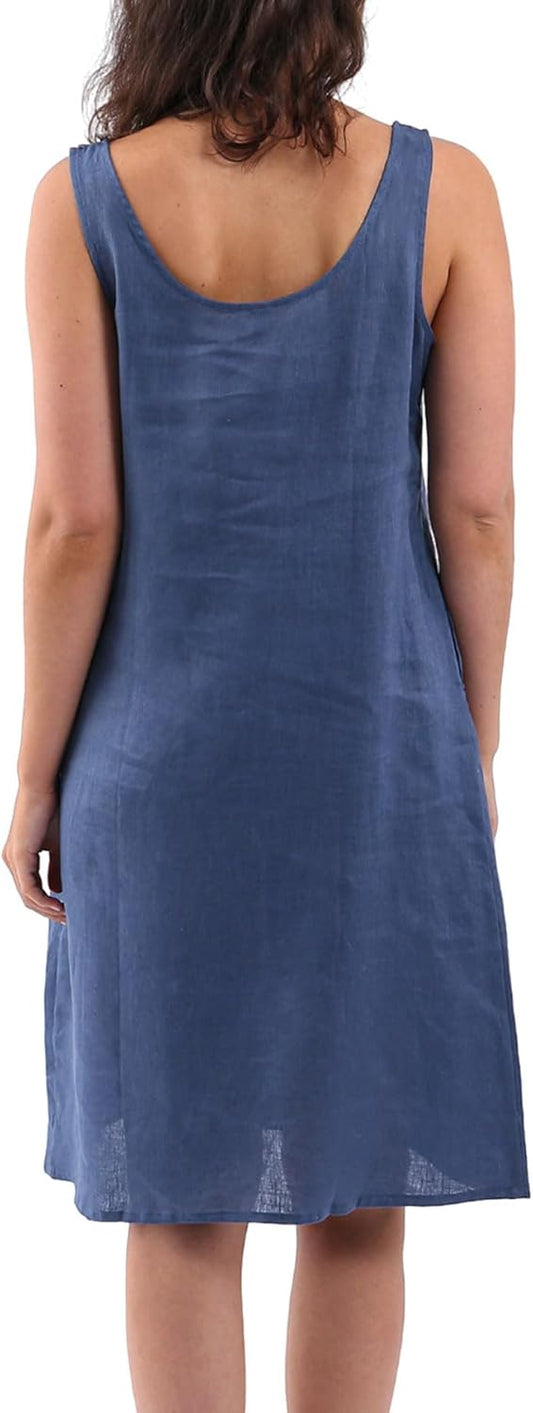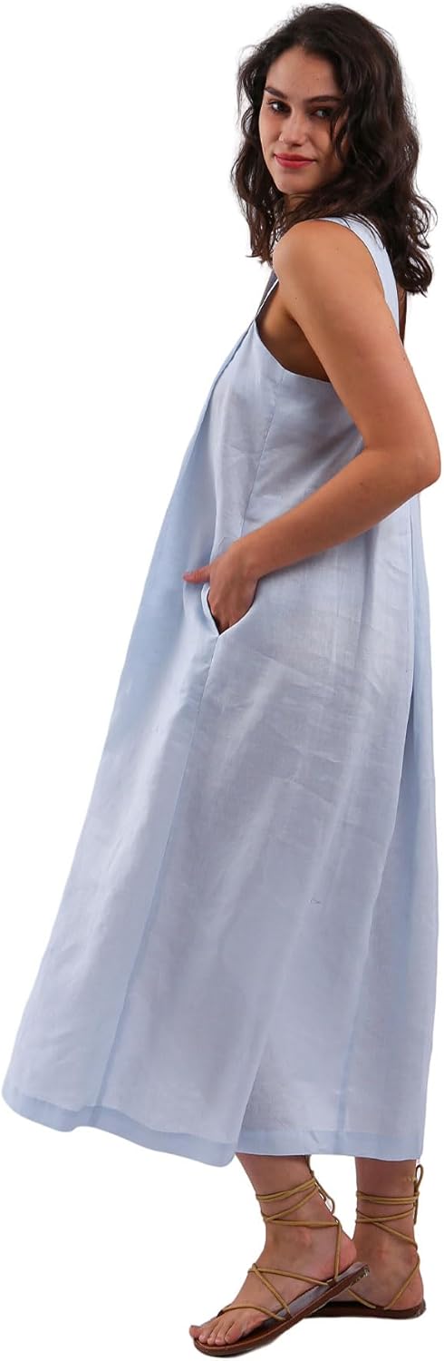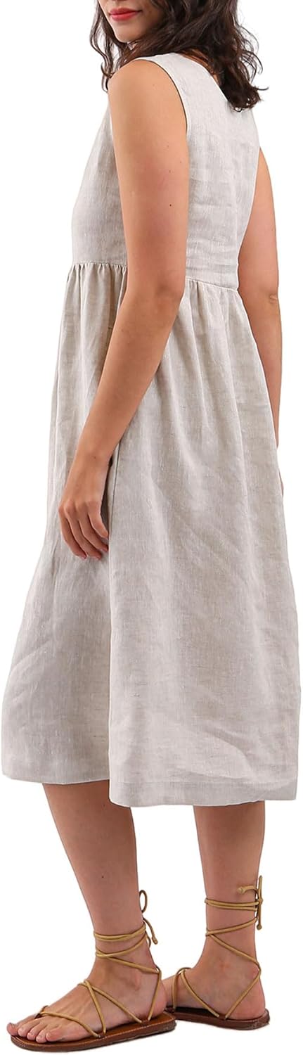 Women's 100% Linen Sleeveless Midi Tank Dresses