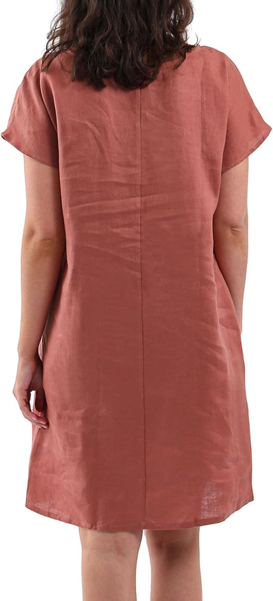 Women's 100% Linen Casual Crew Neck Midi Dresses with Pockets