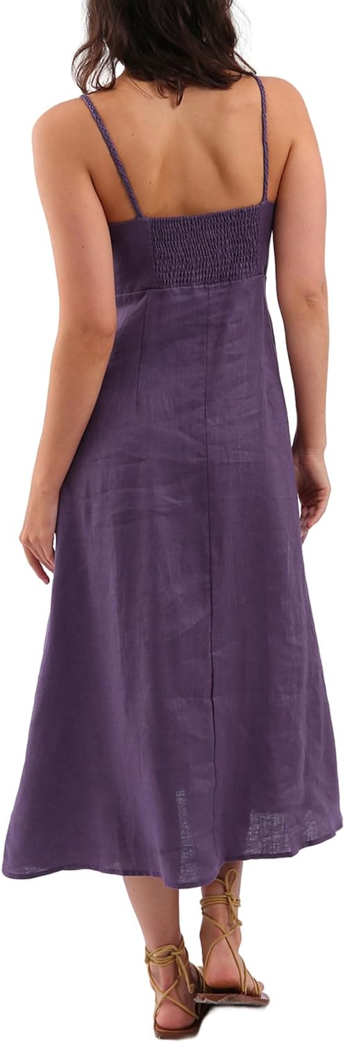 Women's 100% Linen Spaghetti Strap Button Down Midi Dress