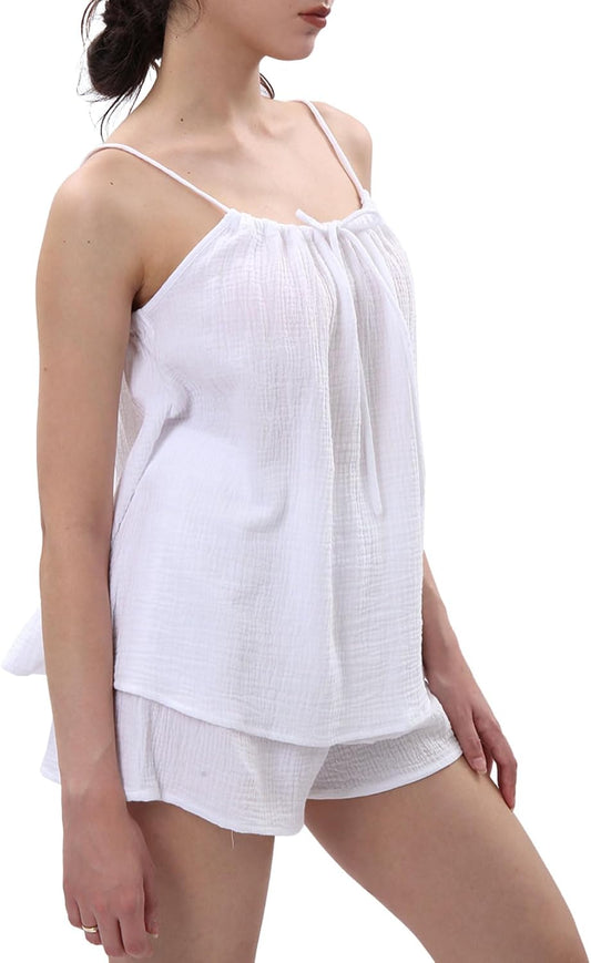 Women's Cotton Gauze Summer 2 Piece Outfits Lounge Pajama Set