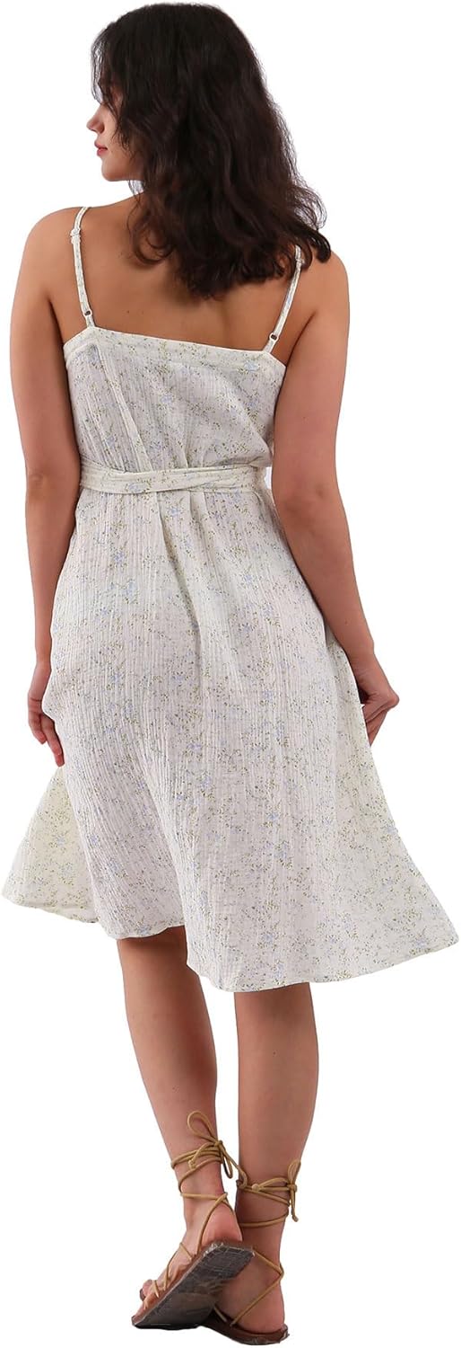 Women's Cotton Gauze Spaghetti Strap Midi Wrap Dress