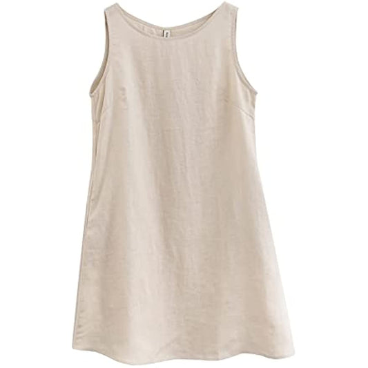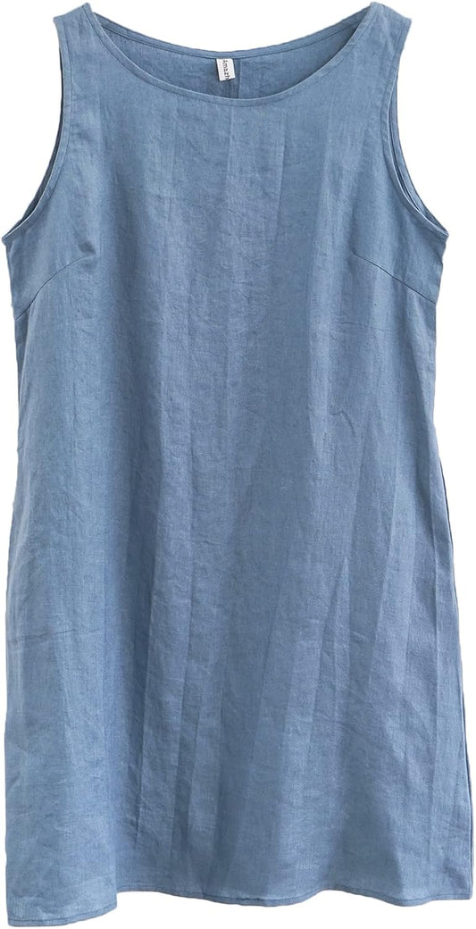 Amazhiyu Women's Linen Sleeveless Shift Dress with Pockets