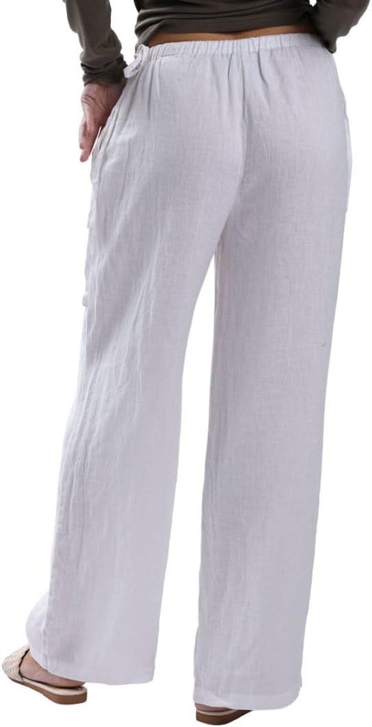 Women's 100% Linen Side Tie Wide-Leg Pants