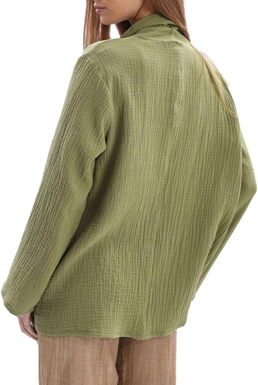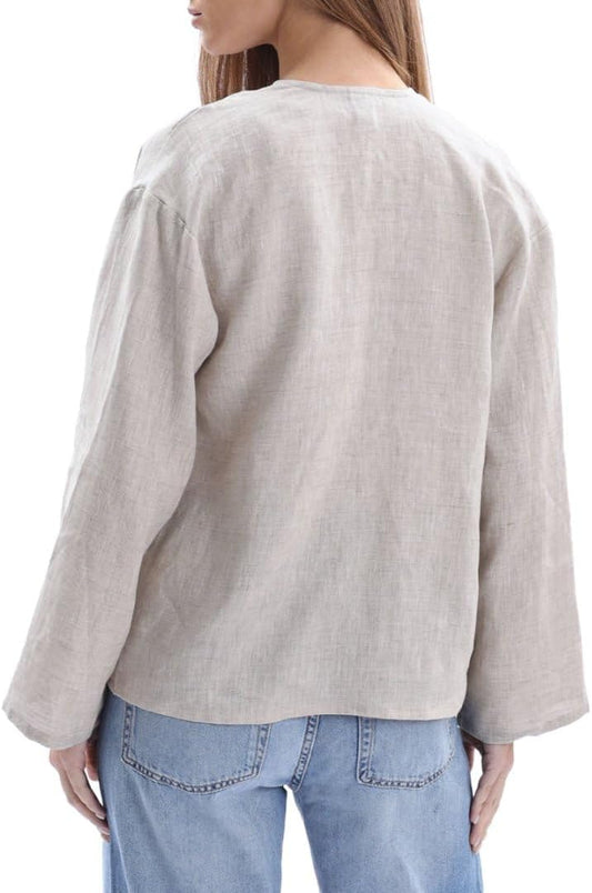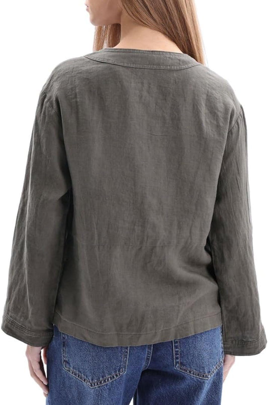 Women's 100% Linen Crop Top Long Sleeve Blouse