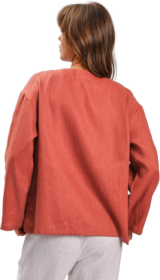 Women's 100% Linen Long Sleeve Open-Front Cardigan