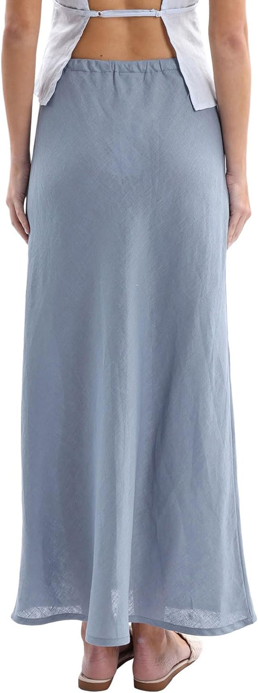 Women's 100% Linen A-line Maxi Skirt with Matching Belt
