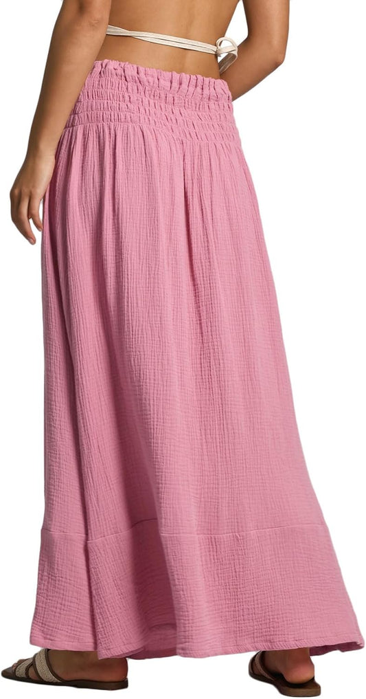 Women's Crinkle Cotton Gauze Button-Front Slit Maxi Skirt
