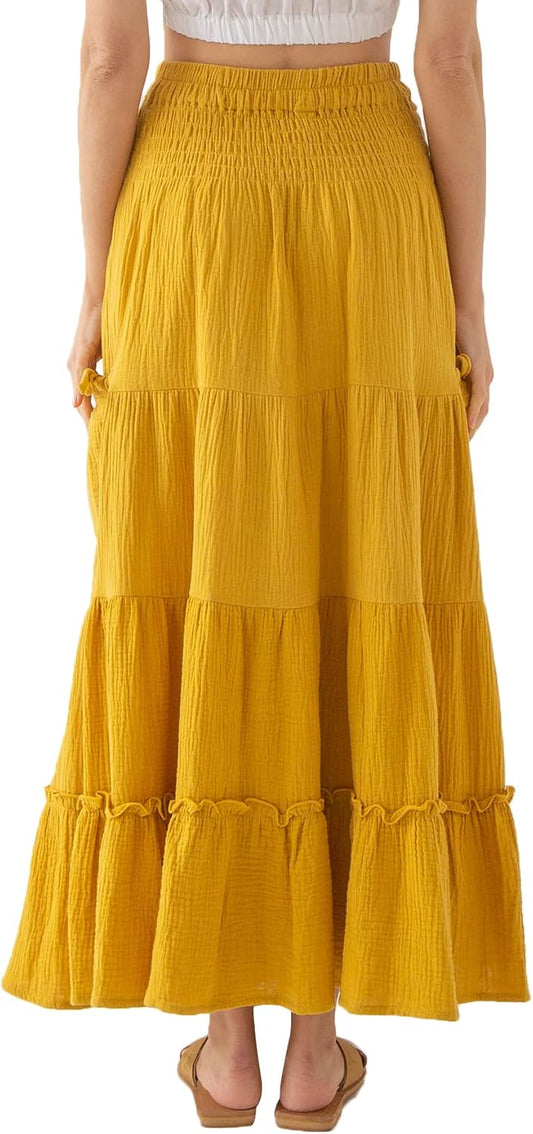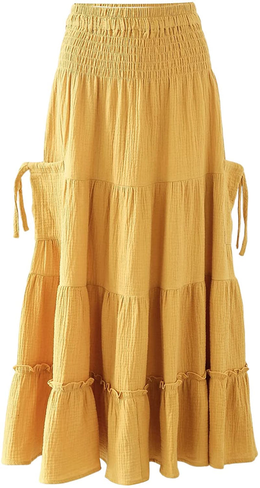Amazhiyu Womens Maxi Boho Skirt Summer Flowy Renaissance Skirt