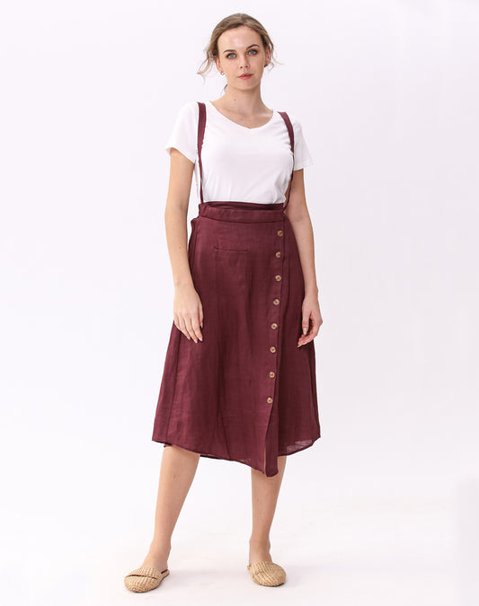 Womens Linen Button Front Maxi Skirts with Pockets Overalls Skirt