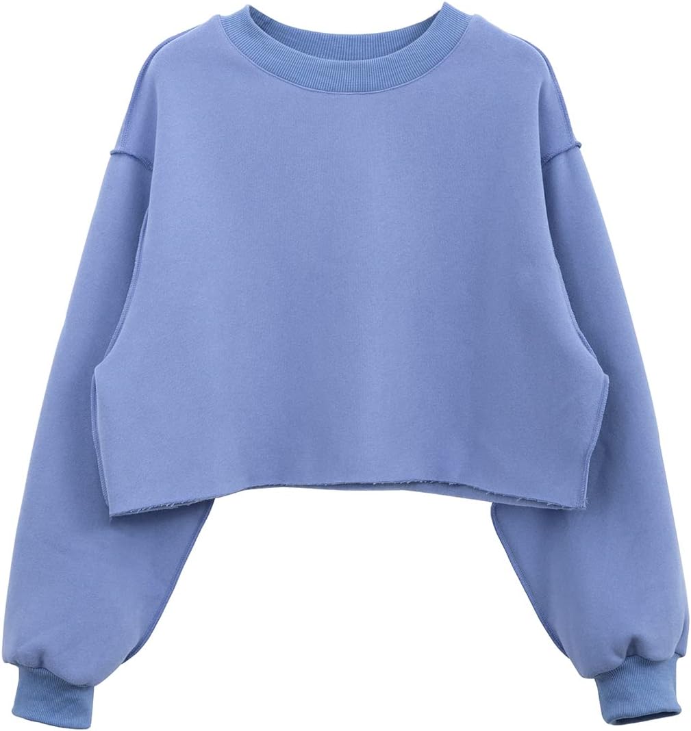Amazhiyu Women's Fleece Raw-cut Cropped Sweatshirt