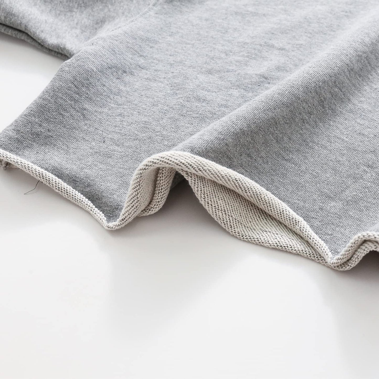 - Features a long sleeve, drop shoulder, crew neck, letter printed, raw-cut hem, ribbed cuffs, crop length, oversized fit