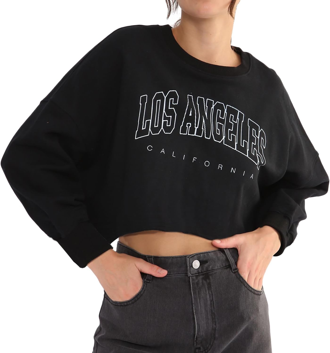 Women’s Pullover Letter Printed Oversized Cropped Sweatshirt