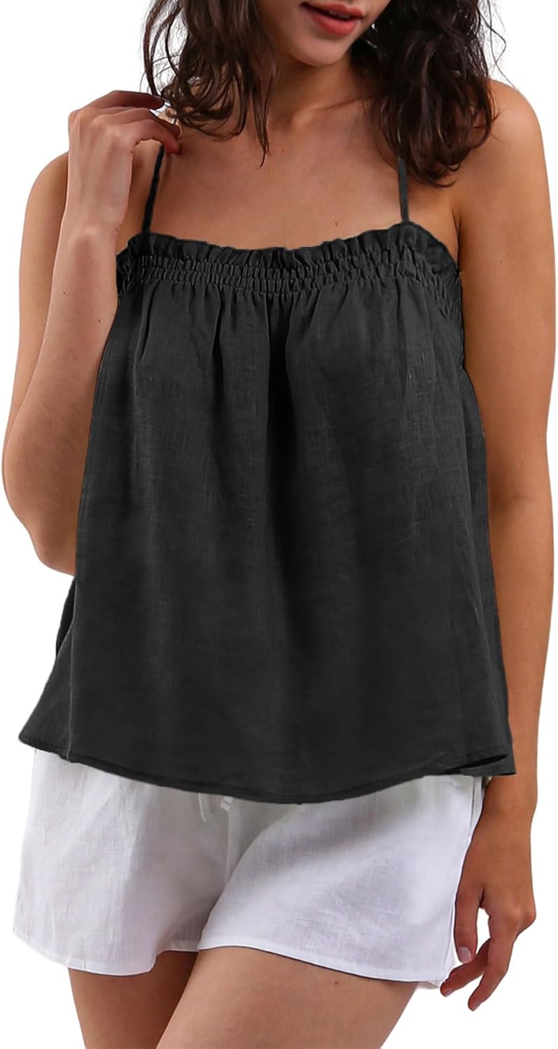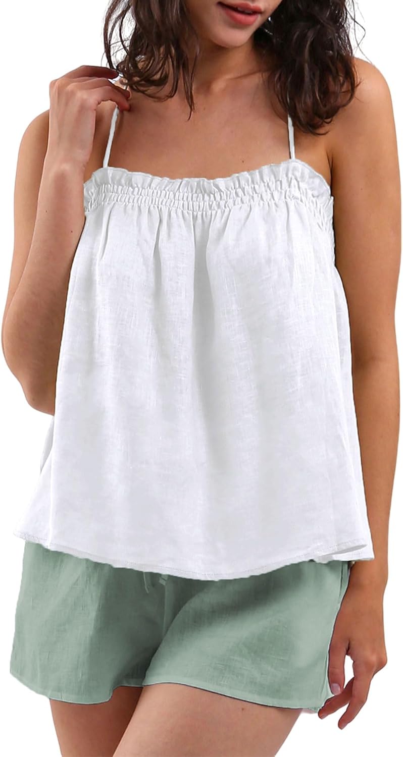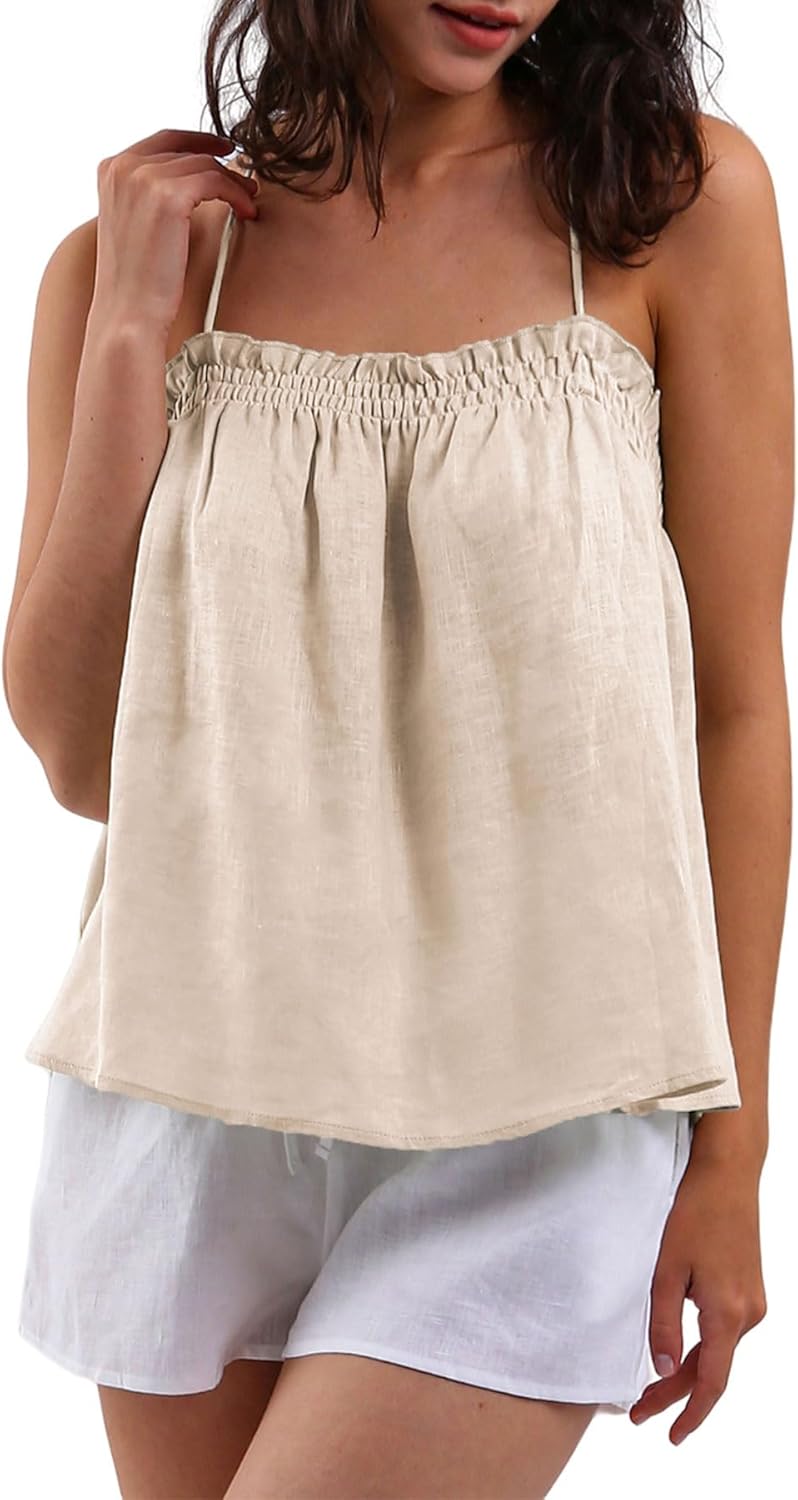 Women's 100% Linen Self-tie Halter Cami Tops