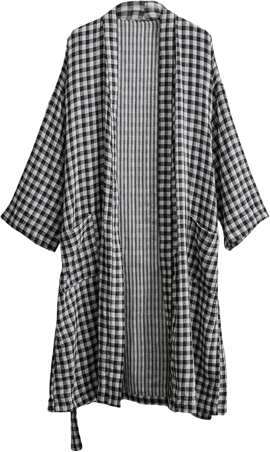 Women's Cotton Gauze Lightweight Plaid Kimono Bath Robe