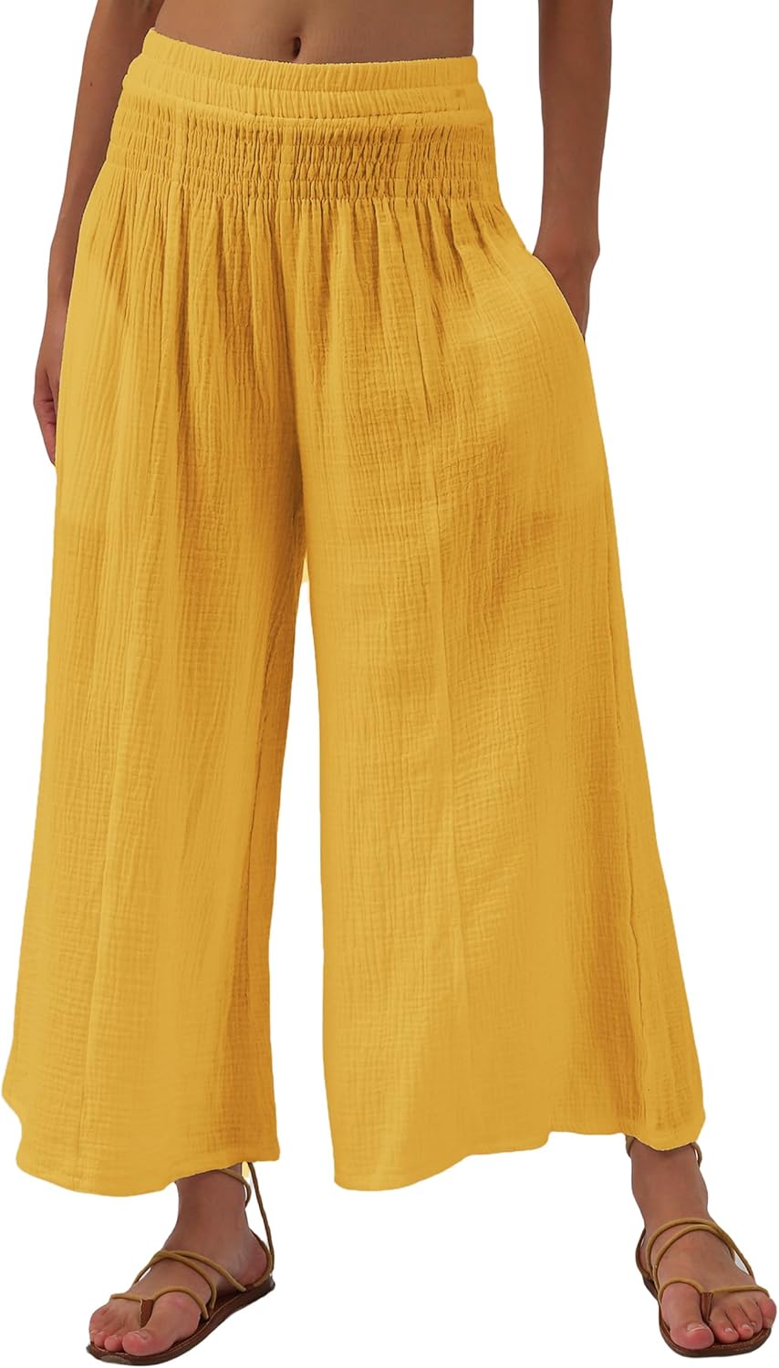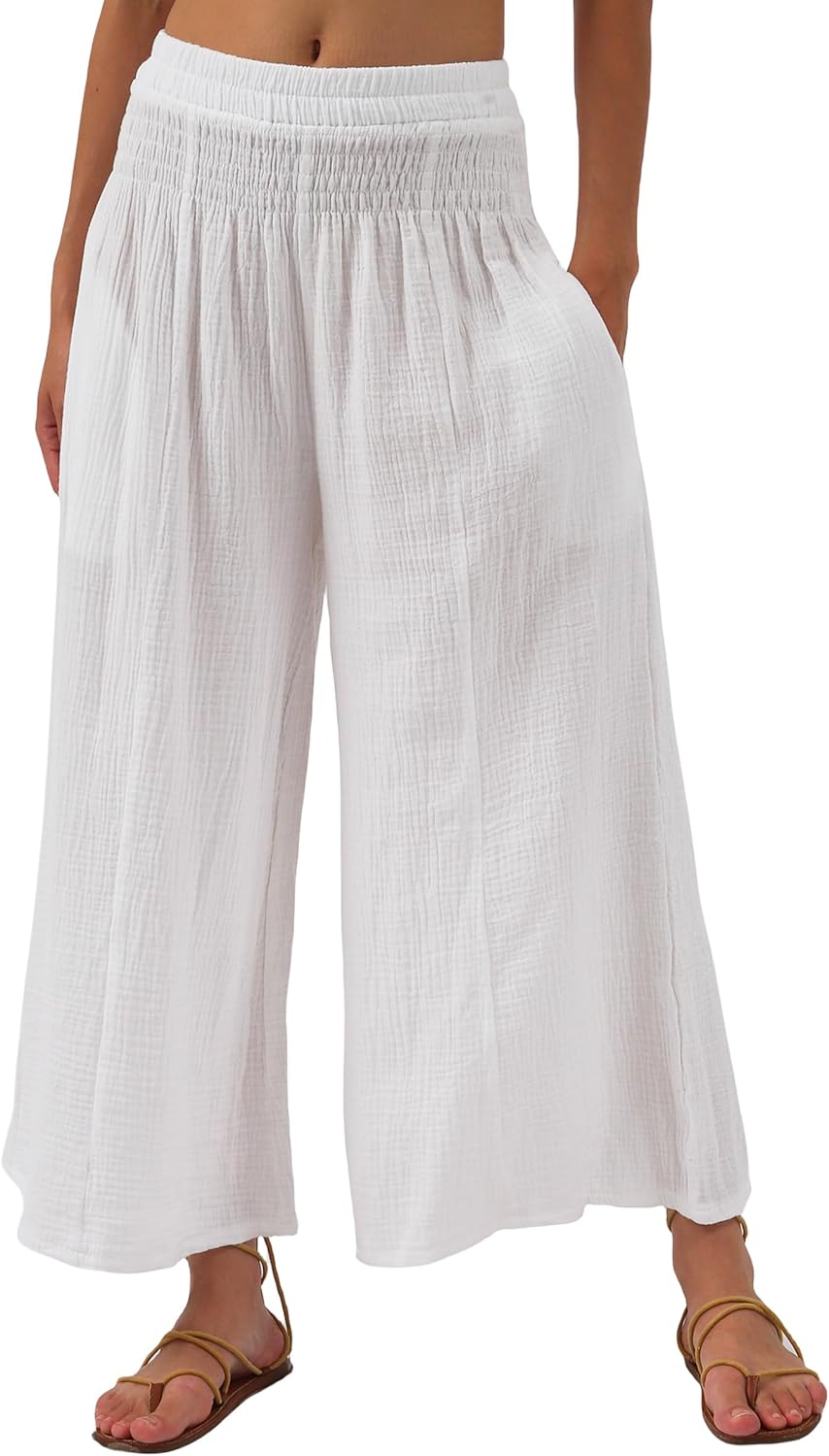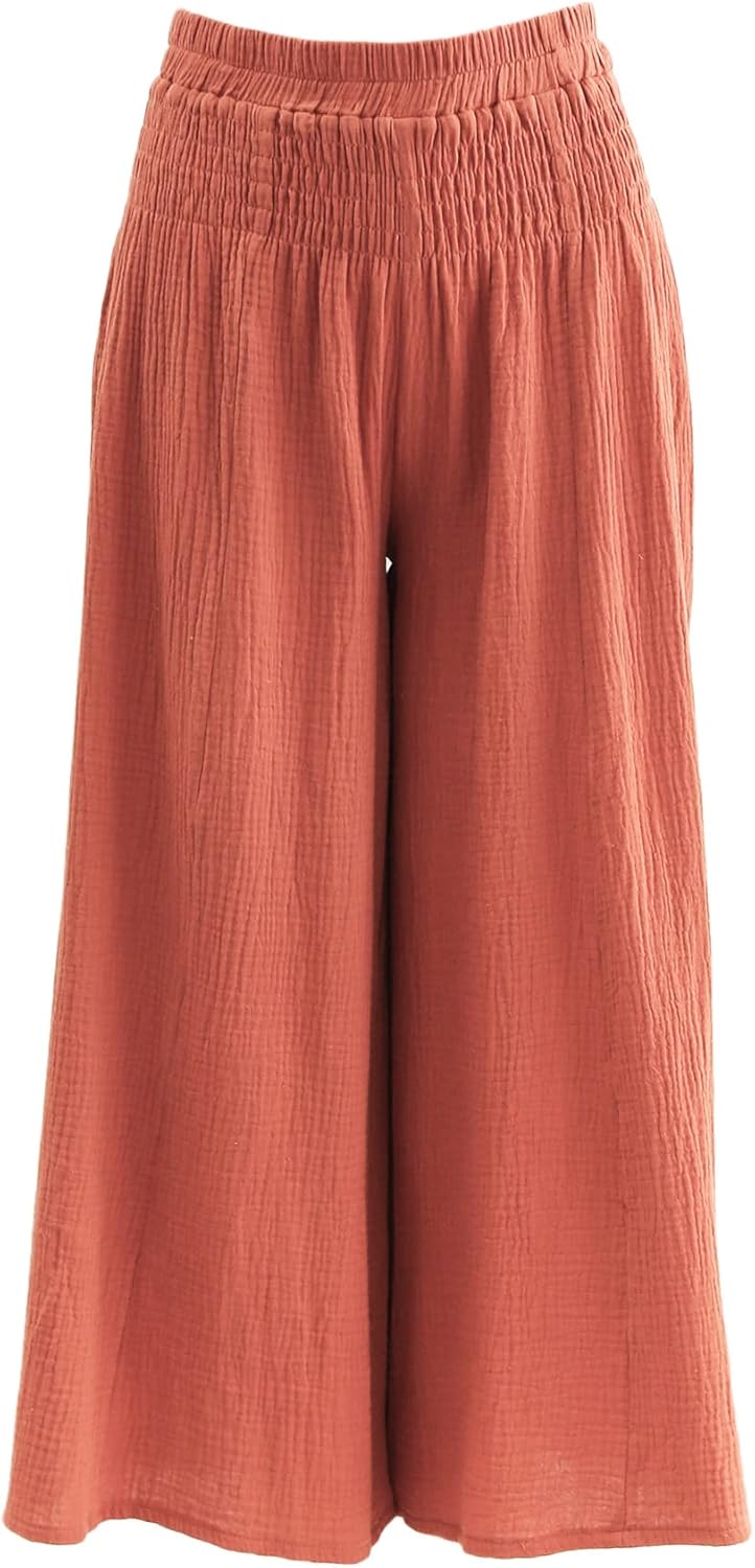 Women's Cotton Gauze Wide Leg Casual Palazzo Pants