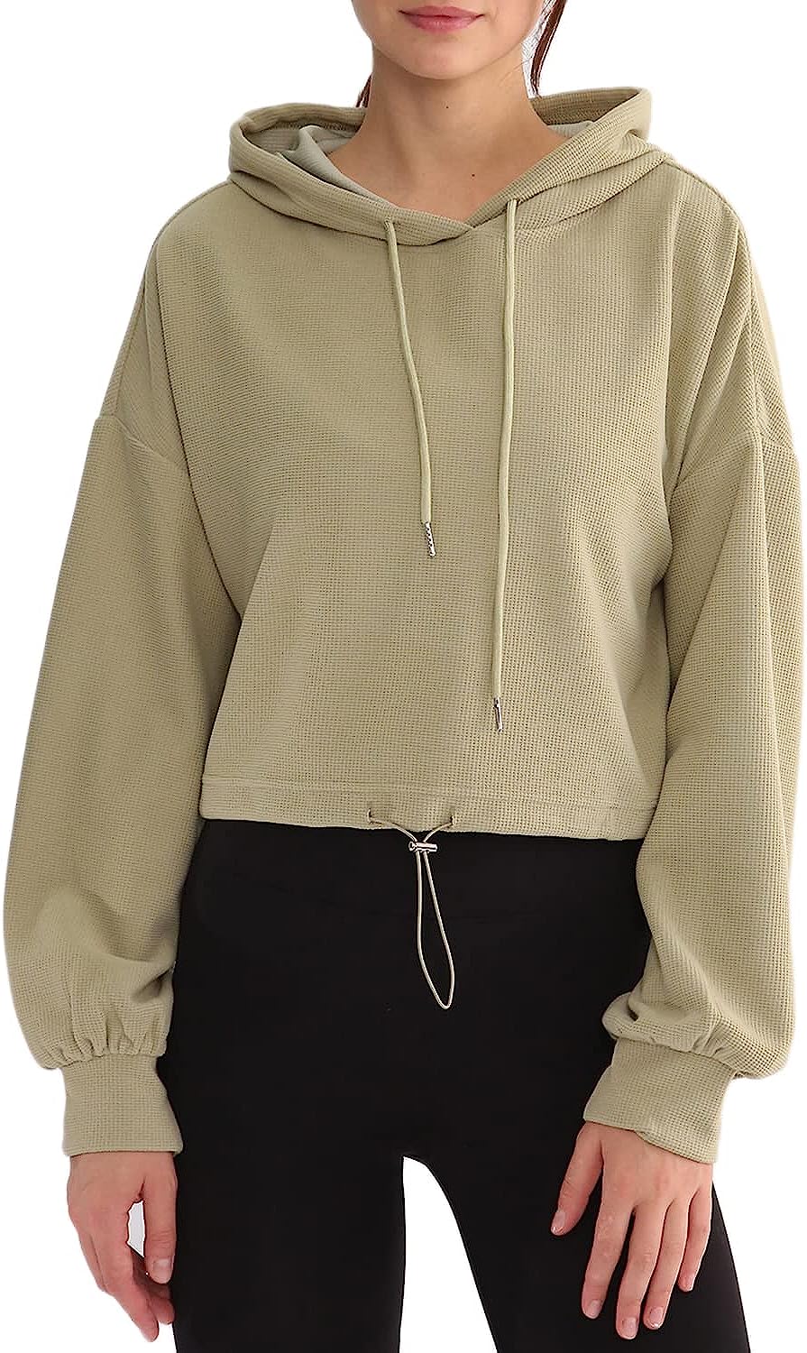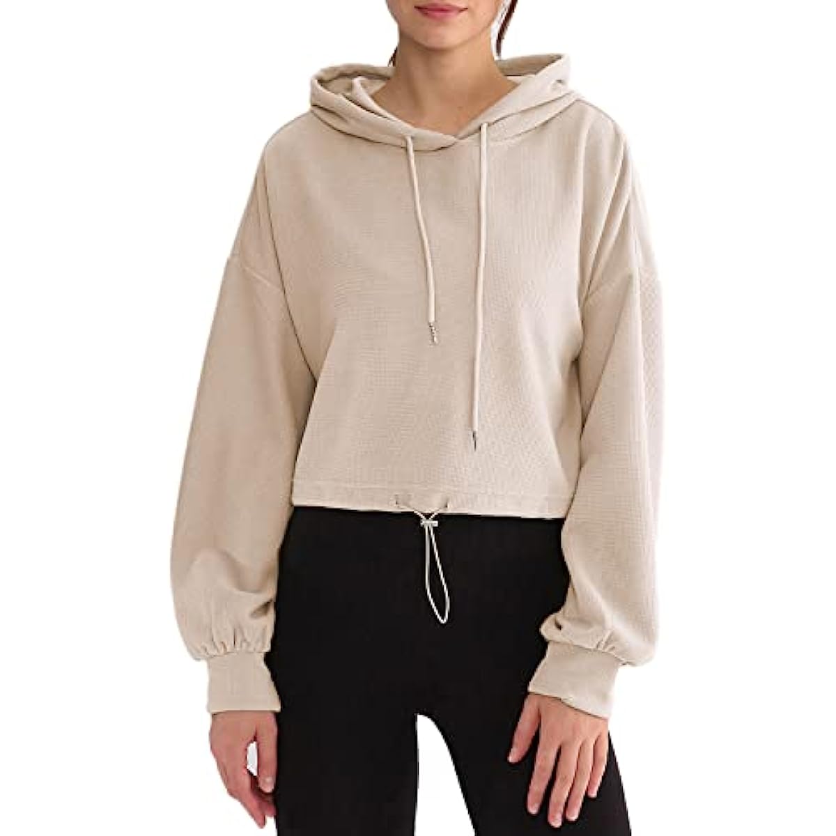 Amazhiyu Womens Waffle Knit Cropped Hoodie