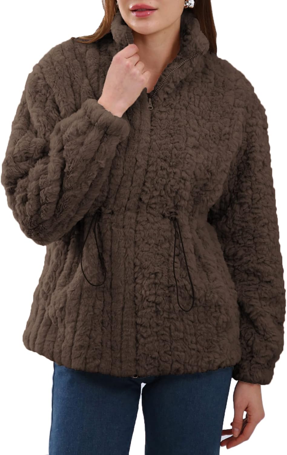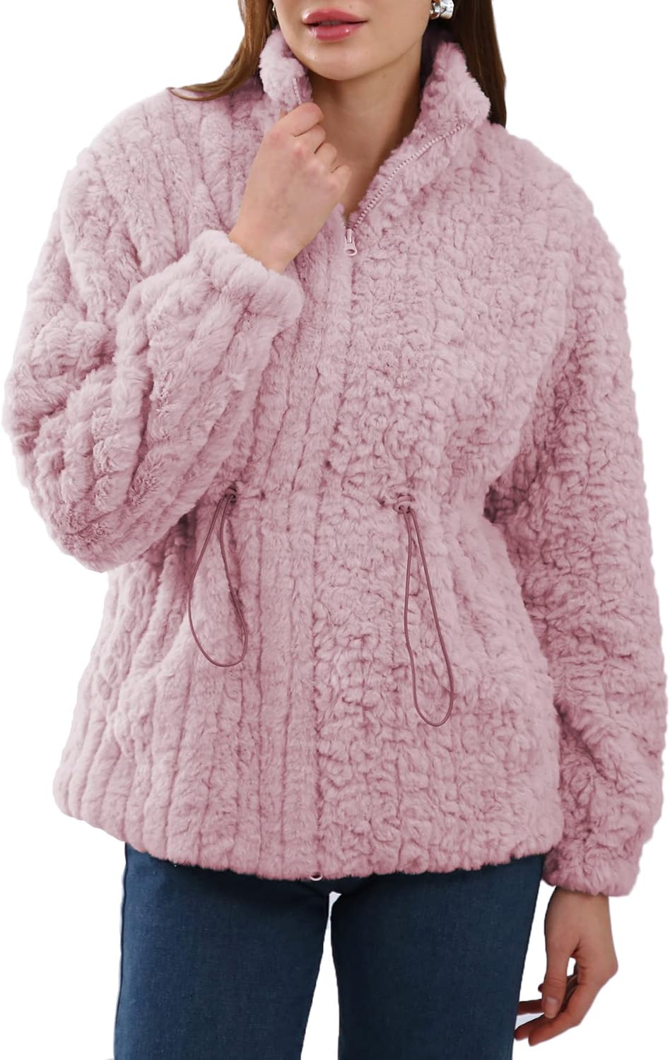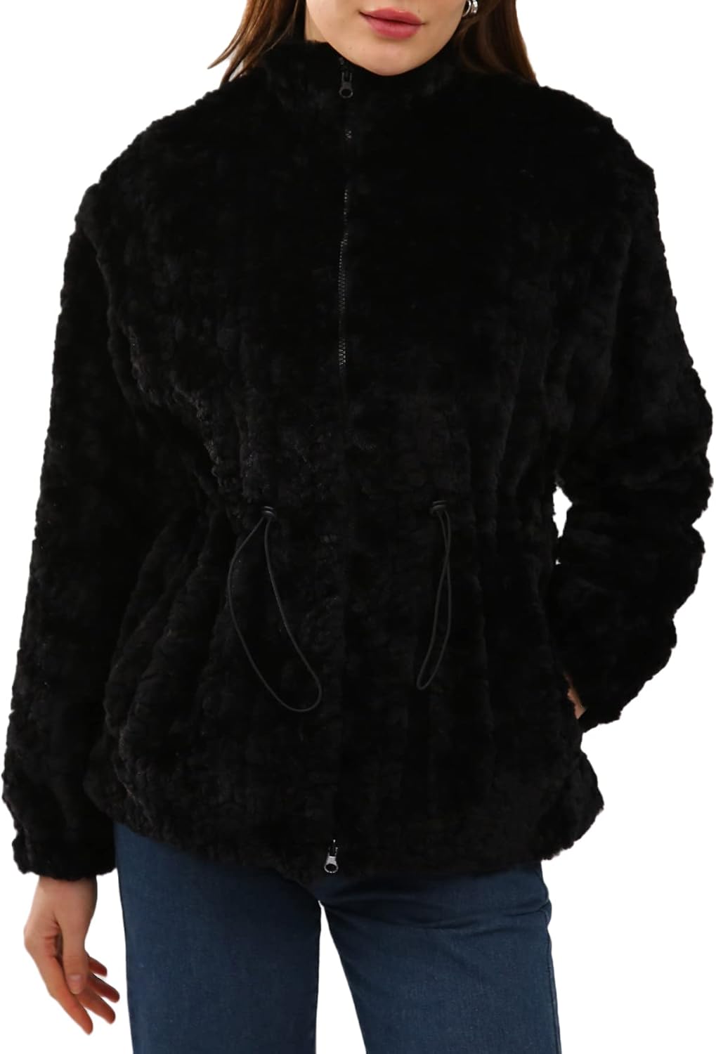 Women's Faux Fur Zip Up Drawstring Jacket